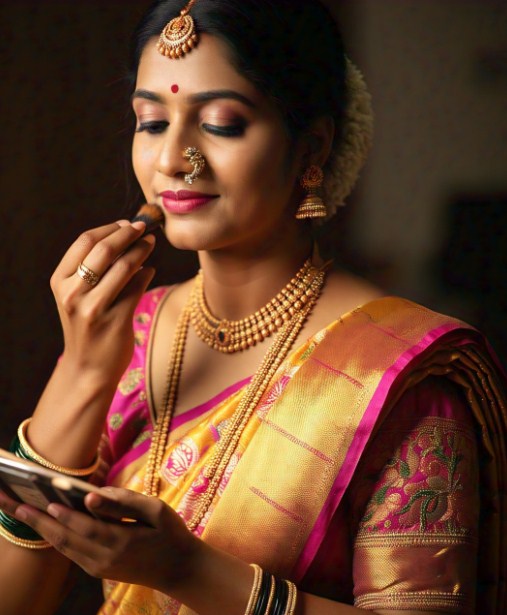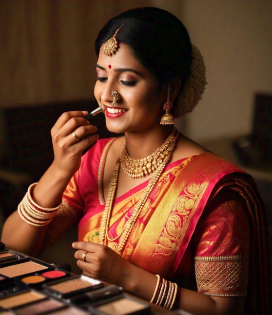 Bridal makeup is a specific type of cosmetic application that focuses on highlighting the natural beauty of the bride on their wedding day. Using various techniques and products, a good makeup artist will create a perfect, camera-ready look that enhances the bride’s features, skin tone, and wedding gowns. Middle of the road made between natural and glamorous look specifically made for brides, bridal makeup professionally and personally designed as per bride’s preferences to give her confidence, beauty on her big day.